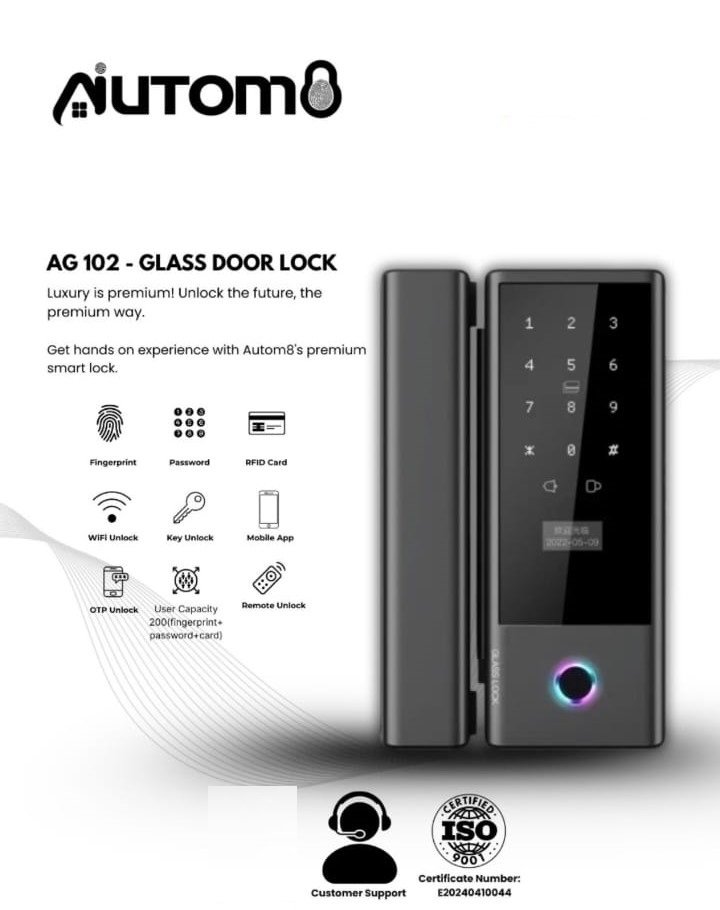 Smart Glass Door Lock with Fingerprint + RFID + Passcode + Wifi MobileApp+ Remort
